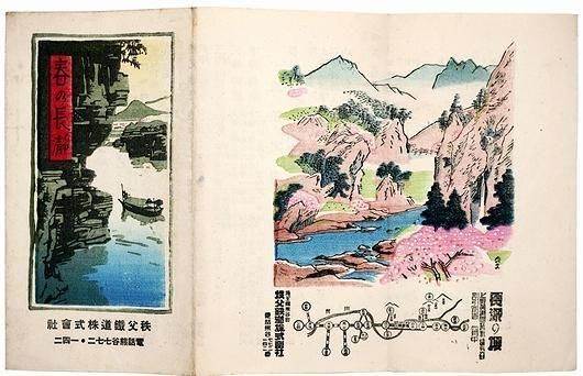 ■著者名: ■出版元:秩父鉄道株式会社 ■刊行年:戦前 ■サイズ:15.5×25.2cm(展開時) ■状態:経年の古色は見られるものの、おおむね良好な状態。 ■内容:木版刷、三つ折。