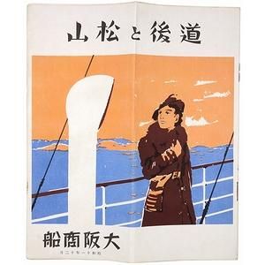 ■著者名: ■出版元:大阪商船 ■刊行年:昭和11年12月 ■サイズ:22.5×19.2cm、8ページ ■状態:経年の古色は見られるものの、おおむね良好な状態。 ■内容:別府航路で高浜御上陸、道後温泉、松山とその附近、石鎚山登行案内、面河渓、伊予遊覧略図、他。