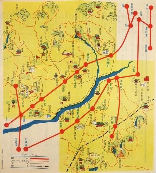 ■著者名: ■出版元:京阪電車 ■刊行年:戦前 ■サイズ:19.2×26.3cm(展開時) ■状態:経年の古色は見られるものの、おおむね良好な状態。 ■内容:三ツ折。イラスト地図、史蹟名勝案内、他。国民精神総動員。
