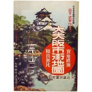 ■著者名:日下伊兵衛 ■出版元:和楽路屋 ■刊行年:昭和12年11月10日 ■サイズ:53.5×78.5cm ■状態:経年の古色は見られるものの、おおむね良好な状態。 ■内容: (表)「最新 大大阪市街地図」 (裏)町名索引表、近畿遊覧地図、諸官衙、名所案内、年中行事、他。 地図全体の画像はこちらをクリック