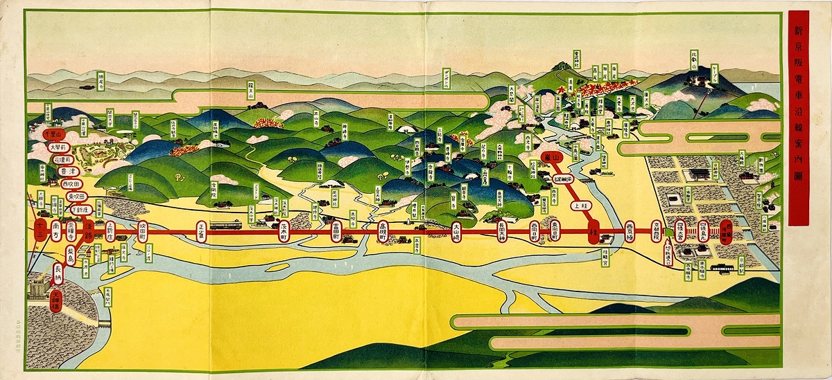 ■著者名: ■出版元:能勢電車 ■刊行年:戦前 ■サイズ:11.8×25.7cm(展開時) ■状態:折目あり。経年の古色は見られるものの、おおむね良好な状態。 ■内容: (表)鳥瞰図「能勢電車沿線御案内」 (裏)乗車賃金表、能勢電車沿線案内、他 全体の画像はこちらをクリック