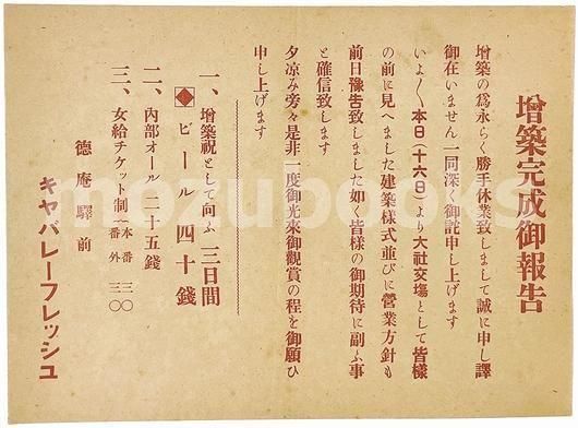 遊郭花街カフェー > キャバレーフレッシュ 増築完成チラシ