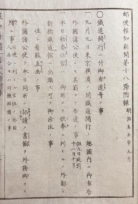 郵便報知新聞 第17号・第18号附録 <鉄道開通布達等の事>
