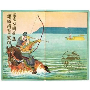 ■著者名: ■出版元:森商店 ■刊行年:戦前 ■サイズ:18×52.5cm ■状態:表紙に経年スレ等の古色あり。鳥瞰図の裏面に経年シミ等の古色あり。全体にやや使用感あり。 ■内容: (表)鳥瞰図「源平古戦場 讃岐名所図絵」 (裏)史蹟屋島 全体の画像はこちらをクリック