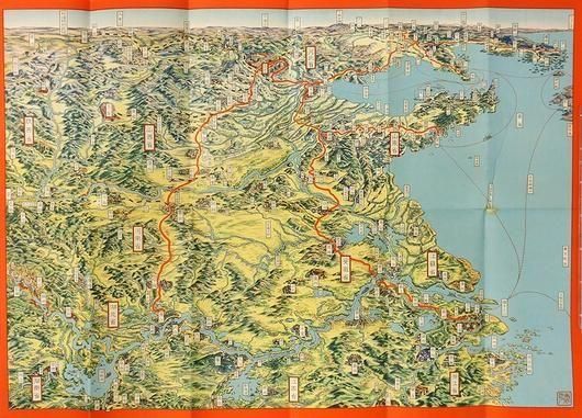 ■著者名: ■出版元:南満州鉄道株式会社東京支社庶務課 ■刊行年:戦前 ■サイズ:37.5×52.3cm(展開時) ■状態:経年の古色は見られるものの良好な状態。 ■内容: (表)支那鉄道沿線案内(北寧鉄路・平漢鉄路・津浦鉄路・京滬線・滬杭甬線・膠済鉄路) (裏)鳥瞰図