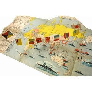 ■著者名: ■出版元:津田商会(新潟) ■刊行年:昭和18年 ■サイズ:24.5×46.5cm(展開時) ■状態:表紙に経年シミ、ヤケ、スレ等のイタミ、古色あり。鳥瞰図自体は特に問題なく良好な状態。 ■内容:満洲国、大日本帝国、ナチスドイツ等、万国旗が飛び出す仕掛けになっている。折目に少し補修はあるものの、欠品もなくおおむね良好な状態 全体の画像はこちらをクリック