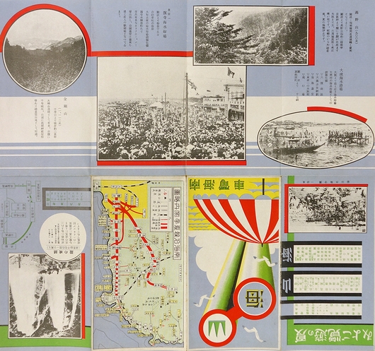 ■著者名: ■出版元:南海電車 ■刊行年:戦前 ■サイズ:38×35cm(展開時) ■状態:経年の古色は見られるものの、おおむね良好な状態。 ■内容:南海沿線夏季案内略図、高野山、大浜海水浴場、浜寺海水浴場、金剛山、他。