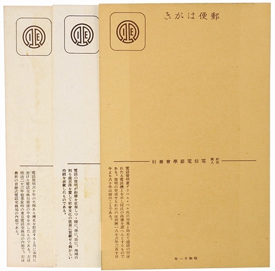 ■著者名: ■出版元:逓信省逓信博物館・電信電話学会(主催) ■刊行年:昭和11年6月1日〜10日 ■サイズ: ■状態:経年の古色は見られるものの、おおむね良好な状態。 ■内容:日本橋三越(会場)。絵葉書3枚入。昭和11年6月1日付の特印を押印した葉書付。タトウ付。