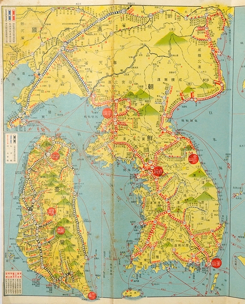 ■著者名:三省堂旅行案内部(編) ■出版元:三省堂 ■刊行年:昭和8年10月10日 ■サイズ:26.3×323cm(展開時) ■状態:経年シミ等の古色は見られるものの、おおむね良好な状態。 ■内容:樺太、朝鮮、台湾入。鳥瞰図多数収録。