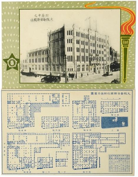 ■著者名: ■出版元: ■刊行年:戦前 ■サイズ: ■状態:経年の古色は見られるものの良好な状態。 ■内容:新築中之大阪毎日新聞社、大阪毎日新聞社新築平面図、以上の絵葉書2枚入。袋付。
